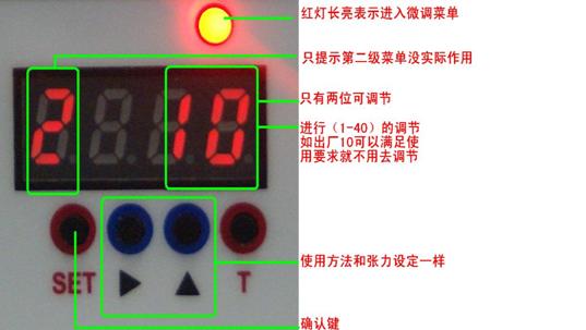 Step Five: Press the "SET" button to enter the state of tension fine tuning mode