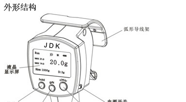 产品概述 本产品适用于线材和带材加工时对张力的检测。产品采用128×64液晶显示屏,高亮度背光设计,显示清晰。表面按键设计简捷大方,操作简便。产品造型新颖,流线形手柄设计方便用户手持。测量结果直接显示张力值并同步提供最大值和最小值。 外形结构