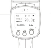 操作说明 开机 按张力表侧面的电源开关可进入开机状态。 各功能键说明 “clear”:复位清零件键。在测量数据并时按下此键起复位清零功能。 “g/N”:用作“克/牛”单位转换。 “hold”:对测量数值进行锁定。