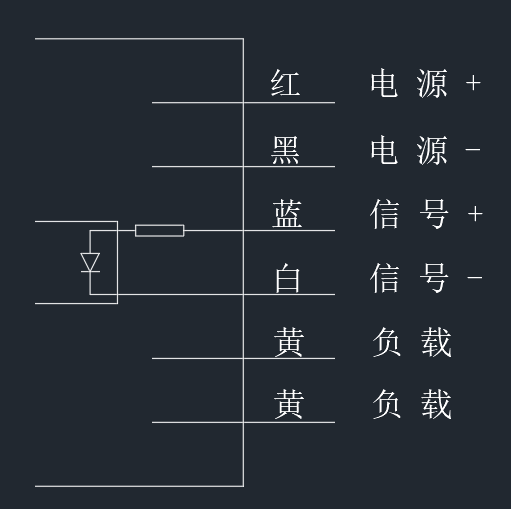 二、 型号说明:以上产品可以左右机安装。 客户可根据自己的机器位置的摆放来选择适安装方式。 三、主要技术参数说明 供电电源:DC24V ± 1V 整机功耗:≤ 4W 输出信号:电压0-23.5V 电流 0 - 0.6A 使用环境:温度0-50℃湿度≤ 85% 保存温度:室温保存 四、 接线说明: 此款产品有六根连接线,分别是: 电源输入(红色线和黑色线), 负载链接(两根黄色线) 两段张力控制线(蓝色线和白色线)