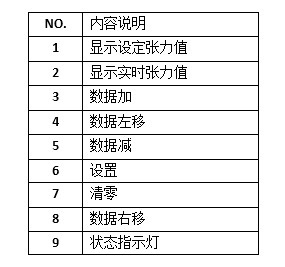 中间端口为4脚插口:上面两位是报警输出接口。有正负极性(长按3号位置设定上限张力,长按5号位置设定下限张力)